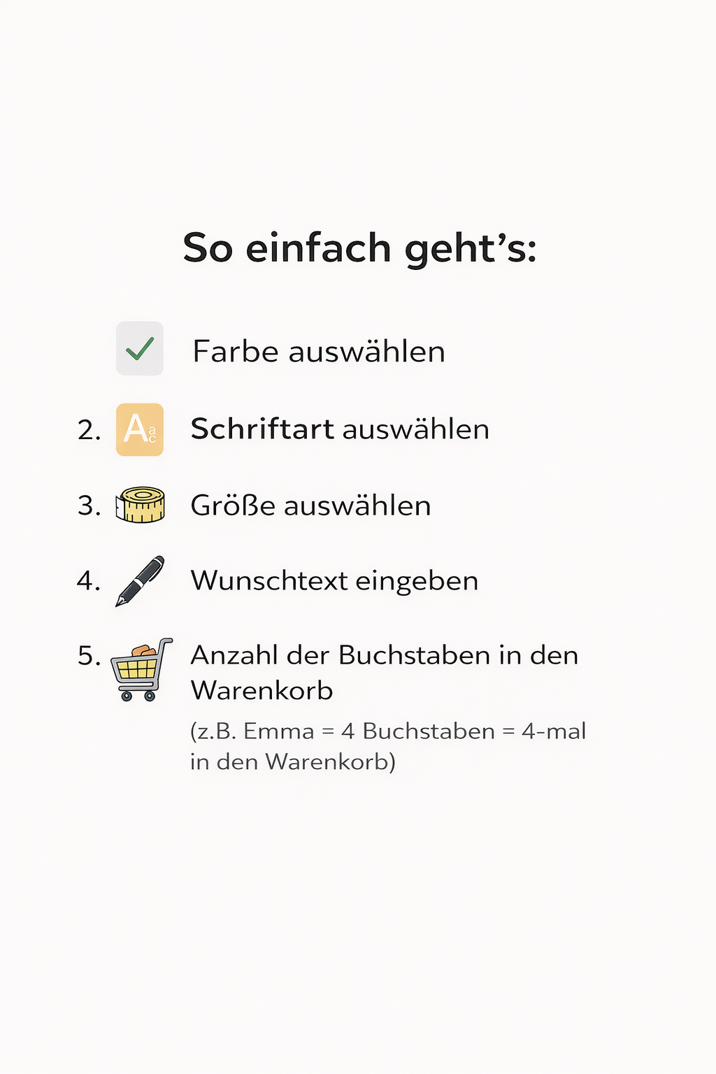 Lege die Anzahl der Buchstaben passend zu deinem Wunschtext in den Warenkorb